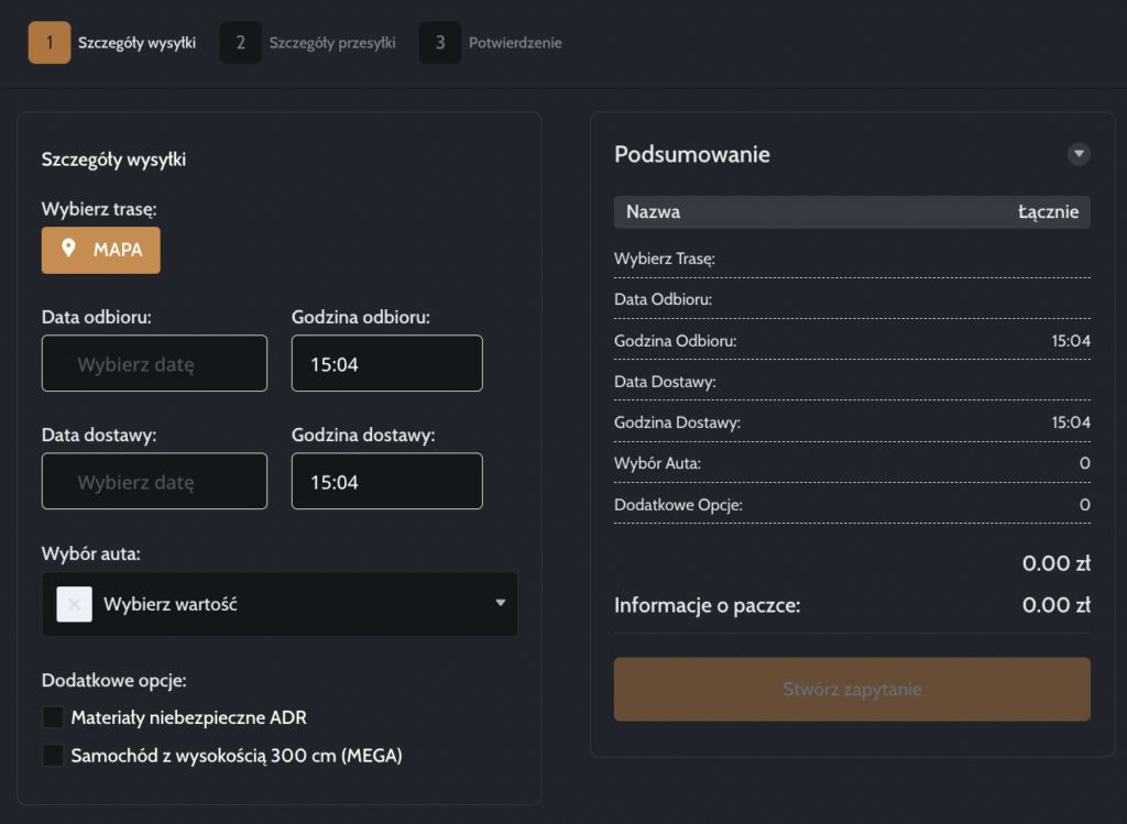 Transport realizujemy naszymi pojazdami. Przesyłka jest monitorowana, a Ty masz bieżącą informację o aktualnej pozycji samochodu.
